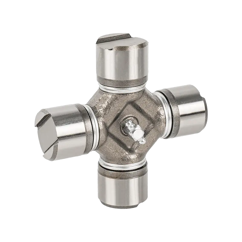 A Universal Joint (U-Joint) ay isang mekanikal na sangkap na nag -uugnay sa dalawang shaft, na nagpapahintulot sa kanila na magpadala ng rotary motion sa iba't ibang mga anggulo. Ang U-joint ay mahalaga para sa paglilipat ng kapangyarihan mula sa makina hanggang sa mga gulong, lalo na sa drivetrains , kung saan ang kapangyarihan ay dapat maipadala sa mga anggulo, tulad ng sa drive shaft ng mga sasakyan sa likuran-wheel-drive. Ang mga U-joint ay matatagpuan sa mga kotse, trak, mga sasakyan sa labas ng kalsada, at makinarya ng agrikultura, at pinapayagan nila ang kakayahang umangkop sa pag-ikot ng mga shaft nang hindi nagiging sanhi ng pilay sa mga sangkap ng drivetrain ng sasakyan.